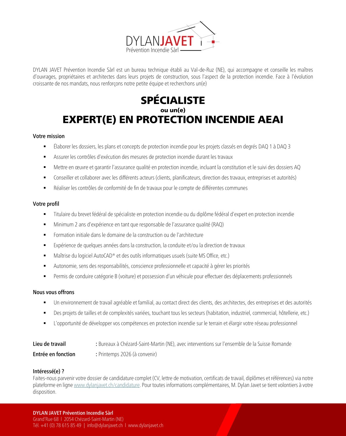 Nous recherchons notre futur(e) Spécialiste ou Expert(e) en protection incendie AEAI !